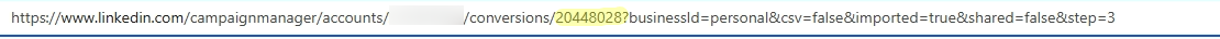 - You will find your conversion ID in the URL following /conversions/