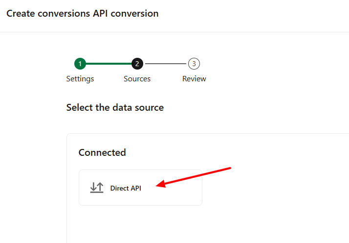3. When you reach the Sources step, select Direct API