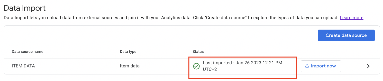 - Once in your Data Import settings, select the button labeled "Create data source".