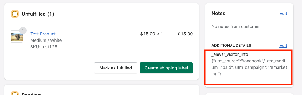 - Click IDs (e.g. fbclid, gclid,) and UTM parameters are stored by Elevar data layer and added to the order. This can help improve attribution accuracy in your server-side destinations.
